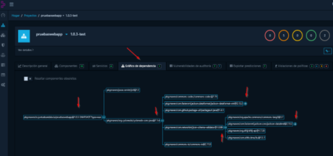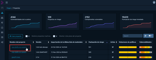 Esta vista incluye información sobre las dependencias, vulnerabilidades y el historial de análisis del proyecto.