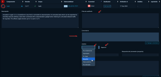 - Añadir comentarios de las acciones realizadas sobre dicha vulnerabilidad.