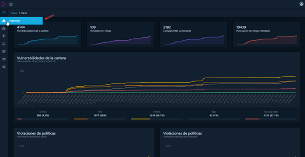 Para acceder a la sección de “Violaciones de políticas", cada usuario dentro de un proyecto en específico deberá hacer clic en el panel de “Violaciones de políticas”.