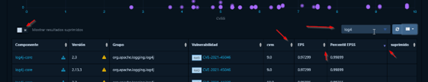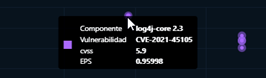Un ejemplo más claro, la librería log4j-core 2.3 tiene un valor de criticidad CVSS 5.9 (escala de criticidad 0 a 10) y una probabilidad que ocurra (EPS) 0.95998 (escala de 0 a 1).