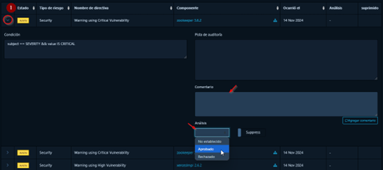 En el proceso de análisis de las vulnerabilidades, un usuario puede añadir comentarios sobre dicha vulnerabilidad.
