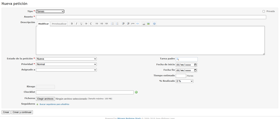 - En el campo Descripción se dará el detalle de las pruebas a realizar.